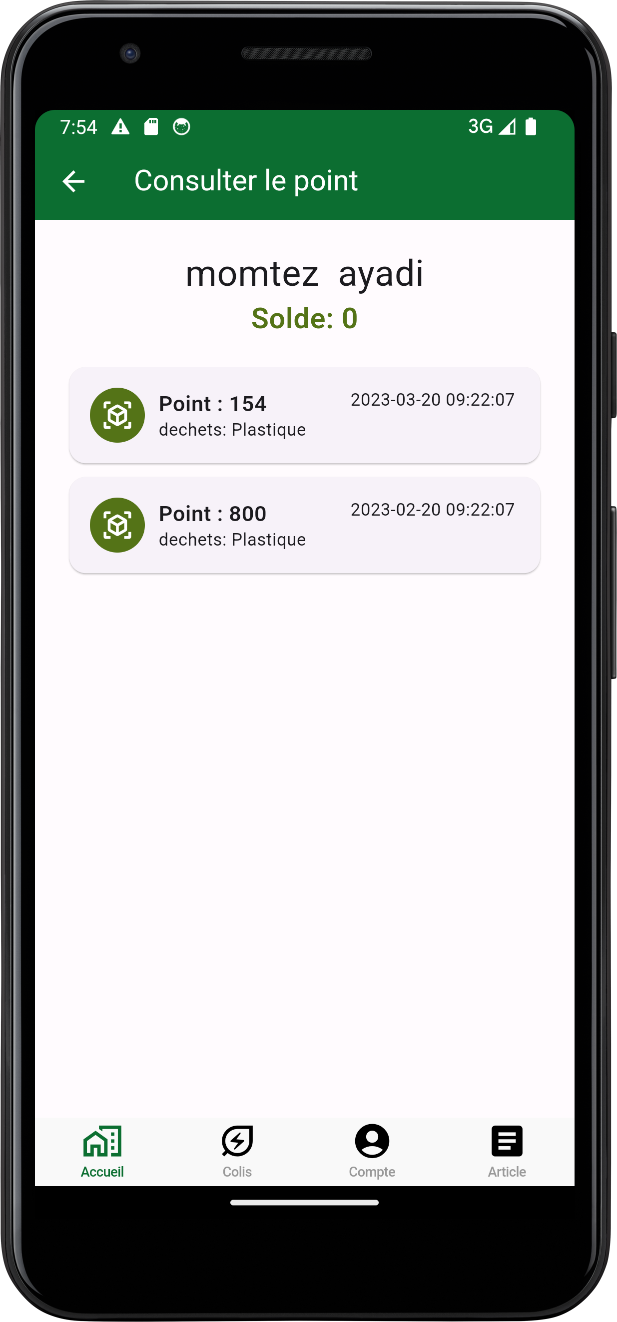 Chaque geste compte ! Gagnez des récompenses pour chaque contribution. Accumulez des points pour chaque dépôt et échangez-les contre des avantages exclusifs, des réductions chez des partenaires locaux, ou faites un don à des organisations caritatives environnementales. Plus vous recyclez, plus vous êtes récompensé.